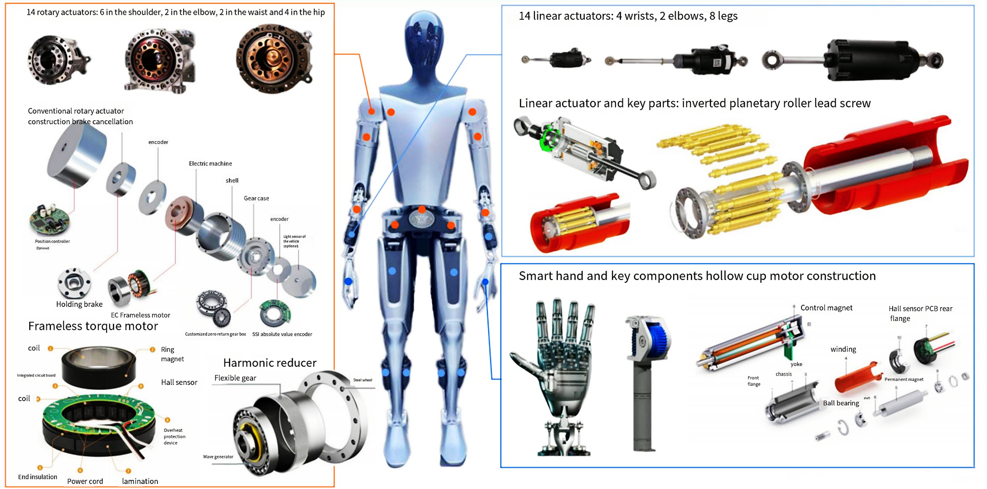 Bei humanoiden Robotern ist der Einsatz von kernlosen Motoren, rahmenlosen Drehmomentmotoren und Planetengetrieben von entscheidender Bedeutung, und sie spielen in verschiedenen Systemen und Funktionsmodulen einzigartige Rollen. Nachfolgend finden Sie ihre detaillierte Anwendungsbeschreibung: